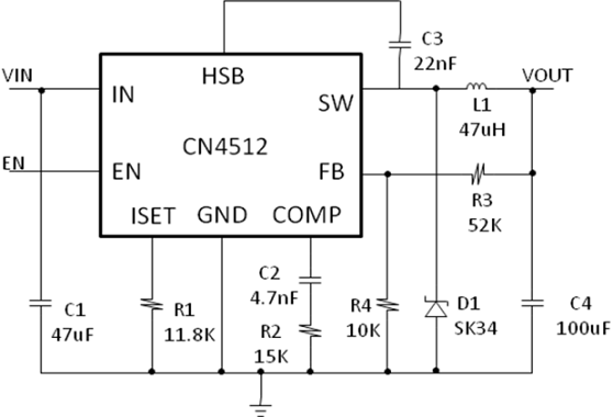 CN4512 is a wide input voltage, high efficiency step-down DC/DC